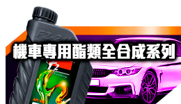 測試,發現一般市面上所販售的酯類基礎油酸性都過高,若是不當使用,反而會有引擎變黑、油封硬化的缺點,根本無法百分之百使用在車輛潤滑